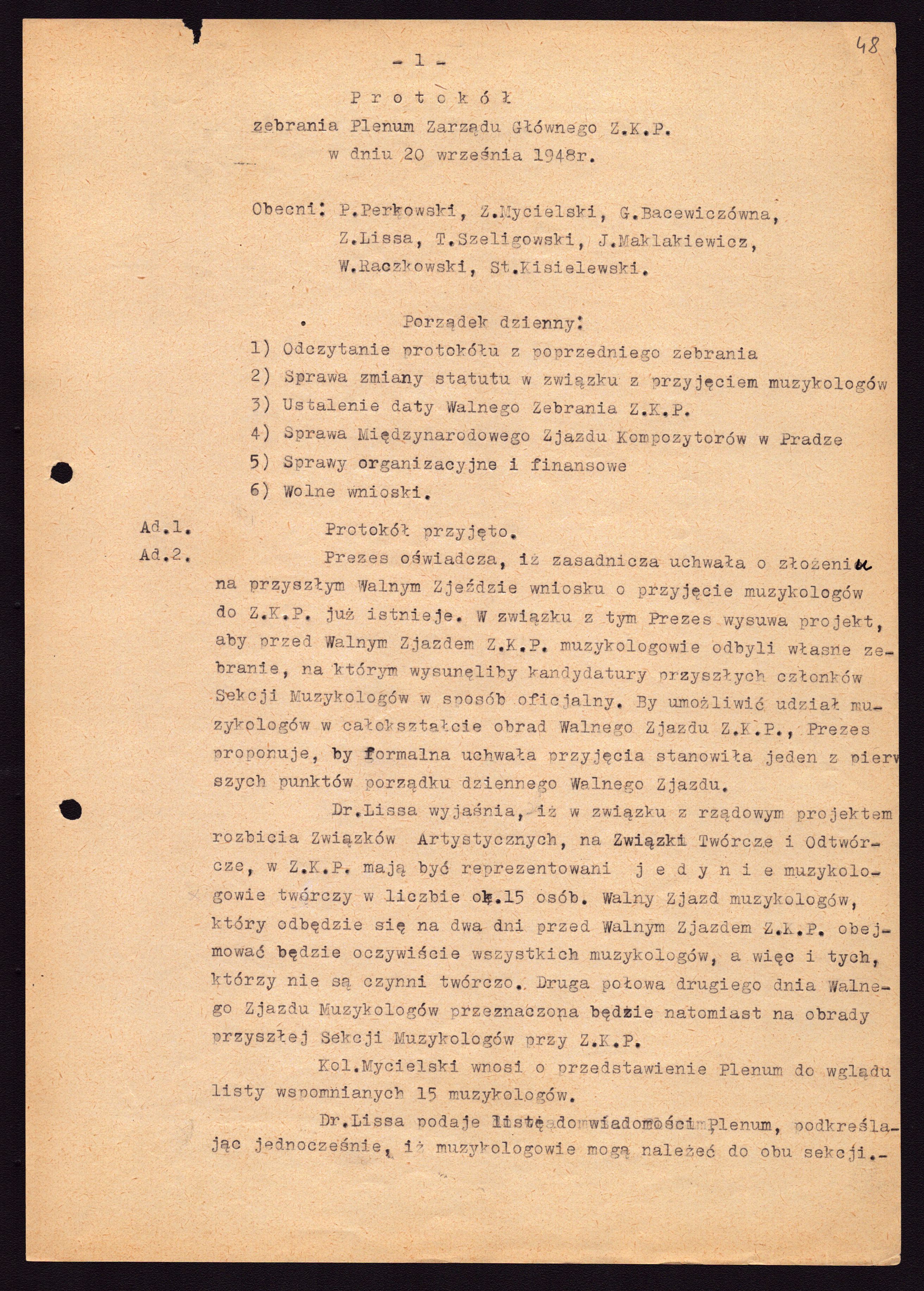 To symboliczne wydarzenie zapoczątkowało długą drogę, którą przebyła Sekcja, zanim po II wojnie światowej stała się fundamentem dla utworzenia Związku Kompozytorów Polskich. Wobec utraty archiwalnej dokumentacji rekonstrukcja tego procesu musi opierać się na źródłach pośrednich. Niniejszy esej nie wyczerpuje całej problematyki – dokładniejsza analiza historii protoplasty współczesnego Związku wymagałaby rozległej kwerendy w rozproszonych archiwach, wykraczającej poza ramy roku jubileuszowego. Przedstawiam zatem poniższy tekst w nadziei na kontynuację badań w przyszłości.