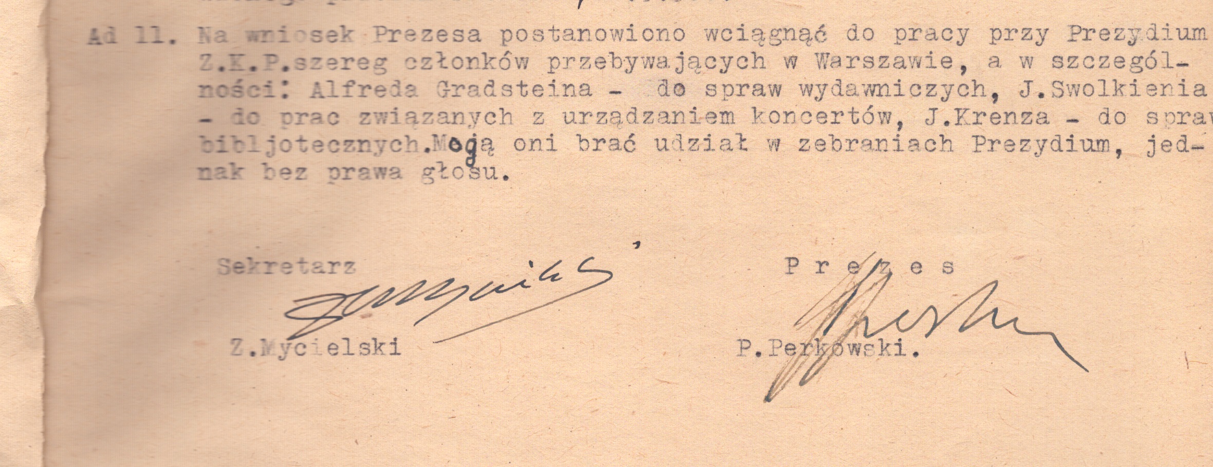 To symboliczne wydarzenie zapoczątkowało długą drogę, którą przebyła Sekcja, zanim po II wojnie światowej stała się fundamentem dla utworzenia Związku Kompozytorów Polskich. Wobec utraty archiwalnej dokumentacji rekonstrukcja tego procesu musi opierać się na źródłach pośrednich. Niniejszy esej nie wyczerpuje całej problematyki – dokładniejsza analiza historii protoplasty współczesnego Związku wymagałaby rozległej kwerendy w rozproszonych archiwach, wykraczającej poza ramy roku jubileuszowego. Przedstawiam zatem poniższy tekst w nadziei na kontynuację badań w przyszłości.
