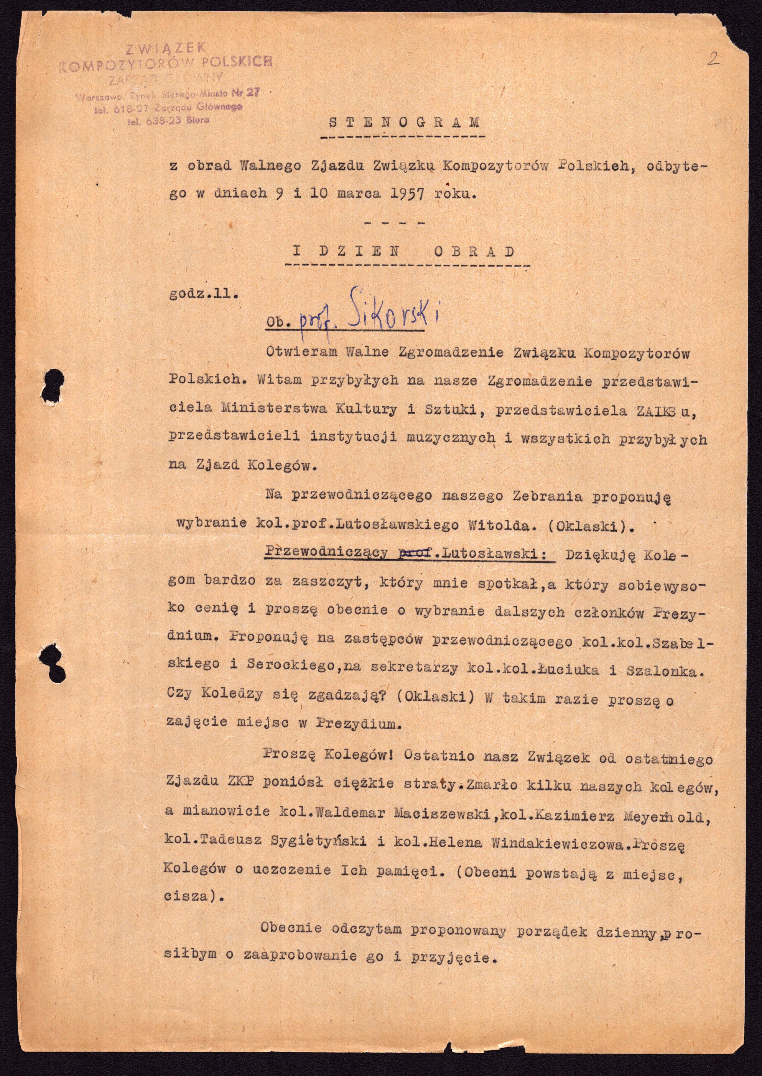 w 2025 roku Związek Kompozytorów Polskich obchodzi Jubileusz 100-lecia istnienia. Przed stu laty powstało Stowarzyszenie Kompozytorów Polskich, a przy jego narodzinach był sam Karol Szymanowski. Stowarzyszenie działało również podczas wojny, pomagając swoim członkom. W 1945 roku prezes Adam Wieniawski zdawał raport z działalności SKP na zwołanym przez nowe władze w Krakowie Zjeździe Kompozytorów Polskich. Wbrew nadziejom środowiska na kontynuowanie działalności Stowarzyszenie zostało rozwiązane, a komunistyczne władze powołały nowy Związek Kompozytorów Polskich. W 1948 roku do kompozytorów dołączyli muzykolodzy, których oczekiwanym przez komunistów zadaniem miało być kontrolowanie przestrzegania przez kompozytorów w swojej twórczości zasad socrealizmu.