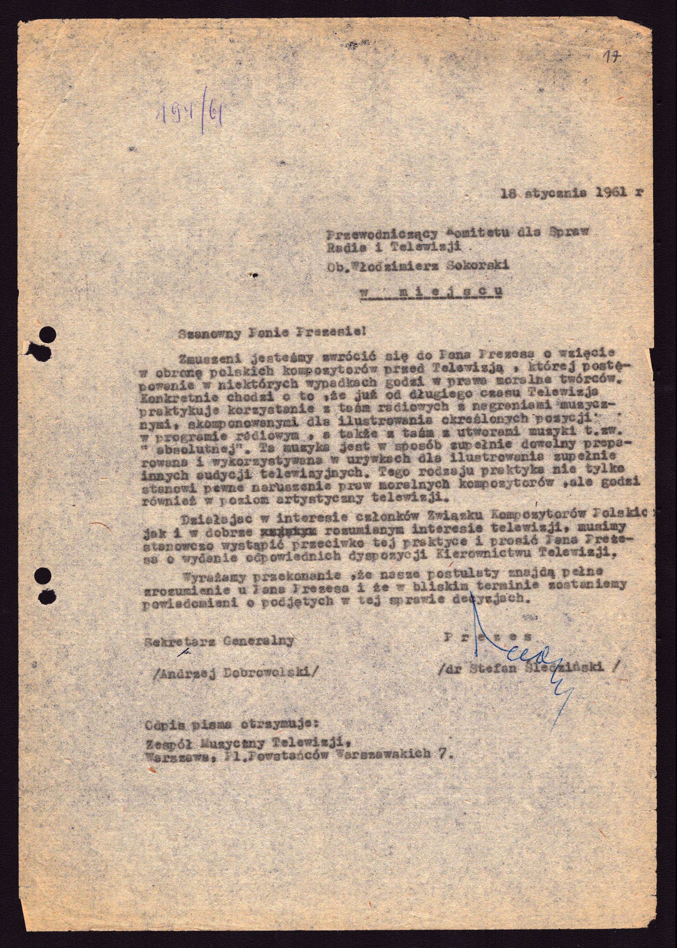 List Pani Prezes Związku Kompozytorów Polskich, Beaty Bolesławskiej-Lewandowskiej
