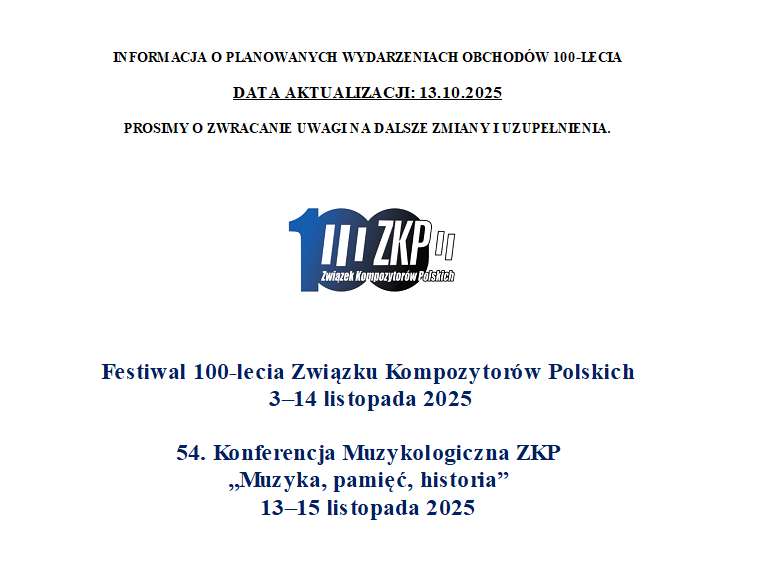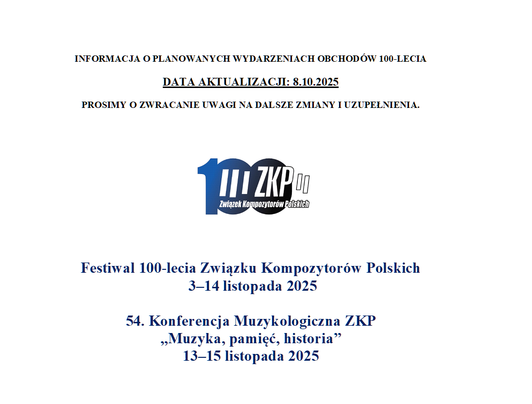 W roku 2025 Związek Kompozytorów Polskich obchodzi Jubileusz 100-lecia stowarzyszeniowego ruchu polskich kompozytorów